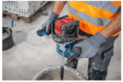 L’outil est compatible avec toutes les batteries 18V Bosch et AMPShare. Il est particulièrement robuste avec son solide cadre en métal avec butoirs en caoutchouc remplaçables et son cadre de protection de batterie. Doté d’un filetage M14, l’agitateur accepte toutes les lames mélangeuses d’un diamètre jusqu’à 160 mm.