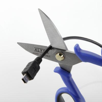 Ciseaux non isolés : ne pas utiliser sur des circuits électriques sous tension.