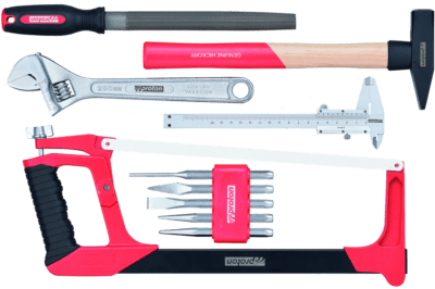 - 1 jeu d'outils 5 pcs. 1 poinçon 120 mm 1 poinçon 120 mm 1 burin plat 130 mm 1 burin en croix 130 mm 1 chasse-goupille 150 mm