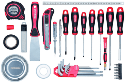 - Avec tournevis PB SWISS TOOLS Coffret robuste en ABS avec tournevis, pinces, clés mixtes, clé à molette, cliquets avec douilles 6 pans, scie à métaux, etc.