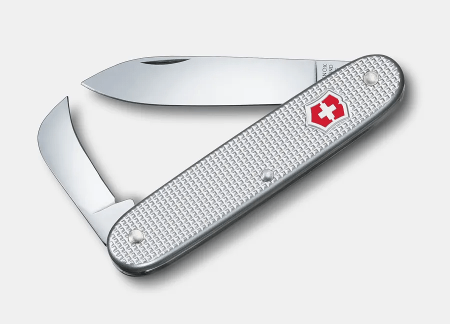 • Couteau de poche avec deux fonctions et côtes en Alox de grande qualité fabriqué en Suisse