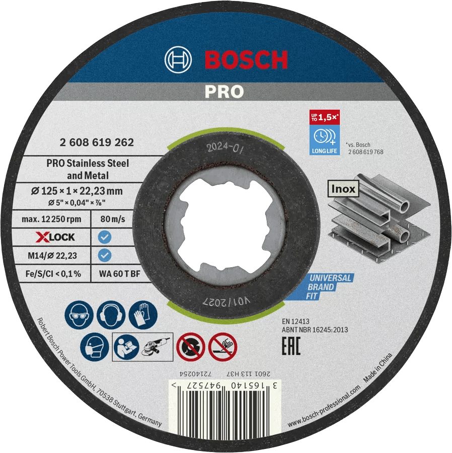 Accueil Vente Disque à tronçonner aggloméré PRO Stainless Steel and Metal, 125 x 1 x 22,23 mm, X-Lock, droit, 10 pièces