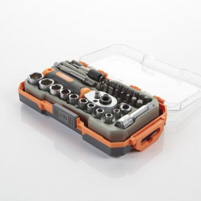 • Set de clés à douilles ¼” de 31 pièces en acier chrome vanadium pour une durabilité et une résistance maximales.