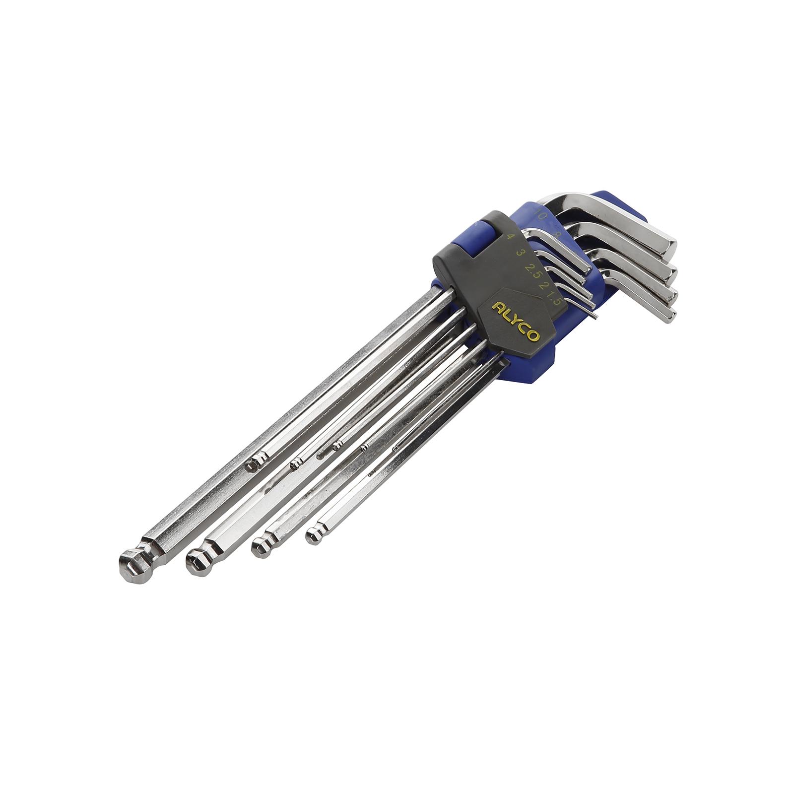 Jeu de clés hexagonales angulaires Allen avec pointe en forme de boule sphérique – long