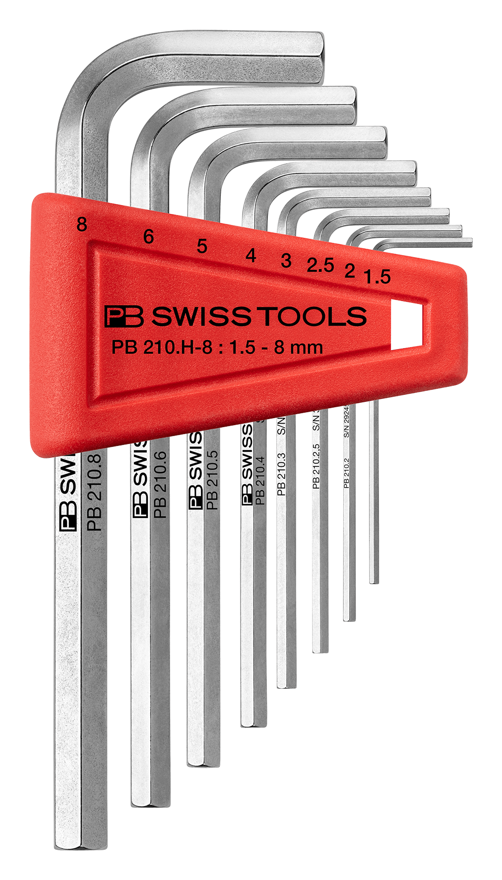 Les clés mâles coudées PB Swiss Tools pour vis à 6 pans (mm) trouvent leur application à travers le monde entier dans les domaines de la construction mécanique et métallique ainsi que dans l’industrie automobile. Les professionnels choisissent leurs outils parmi la large gamme allant de 0.71 à 22 mm. Le respect des olérances pas plus grandes qu’un cheveu est garantit pour chaque clé mâle coudée. Cette qualité dimensionnelle parfaite et l’alliage spécial résistant garantissent des outils précis et durables. Les clés mâles coudées pour vis à 6 pans sont livrables en exécution chromée, avec un revêtement par poudre et code de couleurs. La multitude de clés mâles coudées avec ou sans tête sphérique ne laisse aucune question sans réponse.