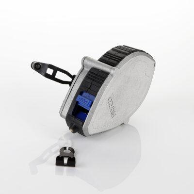 Le cordeau traceur est construit avec une base en métal avec un revêtement extérieur en caoutchouc pour une meilleure ergonomie. Il est doté d’un crochet permettant d’attacher le cordon à diverses surfaces. Le cordon est en polyester pour éviter l’effilochage, et la tirette a une fonction de verrouillage.