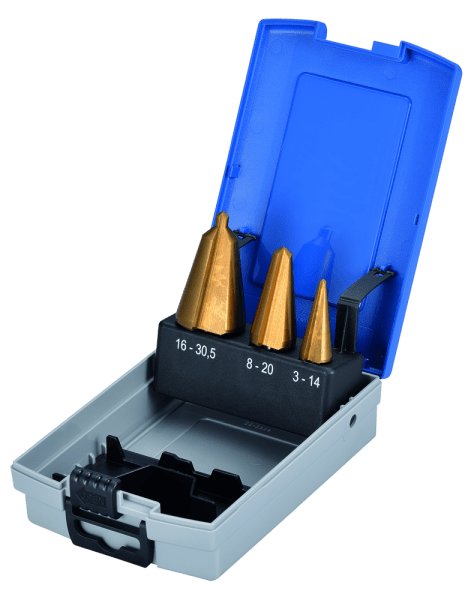 Accueil CONSOMMABLES Accessoires - pour machines électroportatives Forets - Mèches SDS - Lames - Mèches à étage & conique - Disques - Mèches à Bois & Métal - Burins SDS Jeu de mèches coniques D-3TT – HSS – Proton