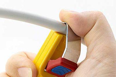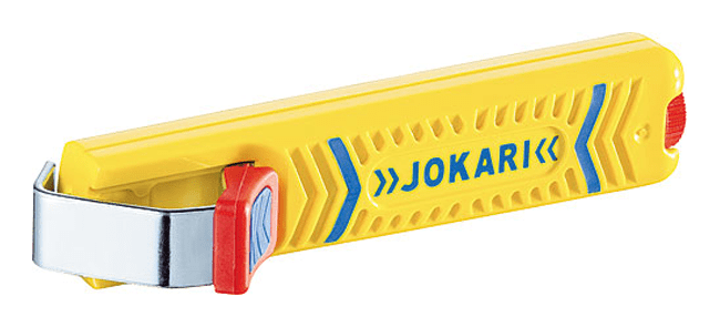 Jokari pour dénuder tous les câbles ronds standard 4 à 28 mm, offrant précision et efficacité.