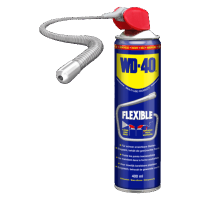 WD-40® Flexible dispose d’un tube de pulvérisation innovant en métal qui peut être courbé individuellement et permet également d’atteindre les endroits difficiles d’accès, la tête de pulvérisation intelligente avec tube métallique intégré empêche la perte du tube de pulvérisation et peut être utilisée pour une pulvérisation précise et de surface, pour une pulvérisation de surface, le tube métallique peut être replié verticalement, pour une pulvérisation précise le tube métallique peut être amené dans une position horizontale.