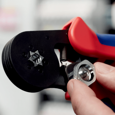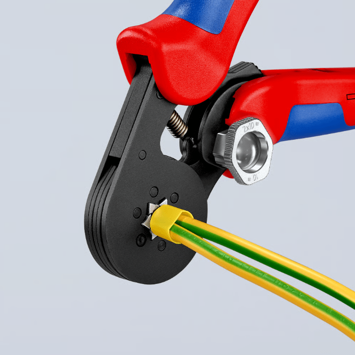 Concevoir une seule pince à sertir couvrant une large plage entre 0,08 et 16,0 mm² représente un véritable défi. Simple à réaliser par l'utilisateur, le sertissage est techniquement hors pair : le profil hexagonal des embouts et des câbles comprimés convient notammment à des dimensions restreintes de raccordement. Knipex a déposé un brevet couvrant le design et le fonctionnement de cette pince à sertir.