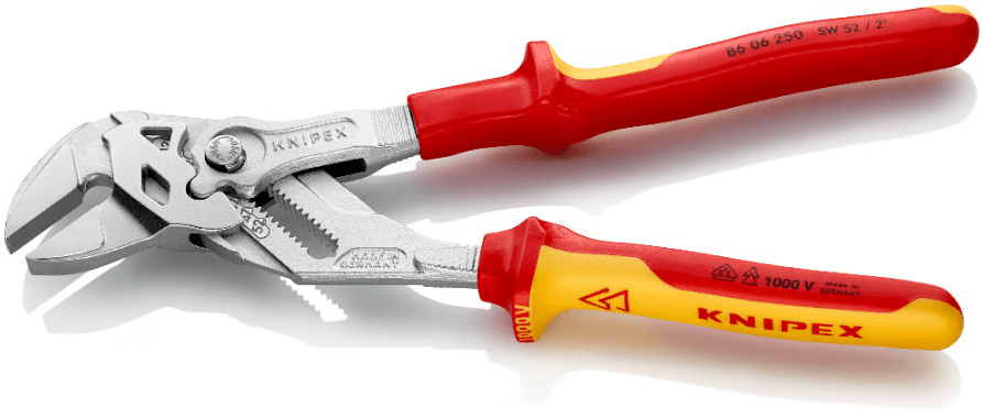 Pince-clé 250mm – Gainage bi-matière – Chromée – Isolée 1000V – KNIPEX 86 06 250