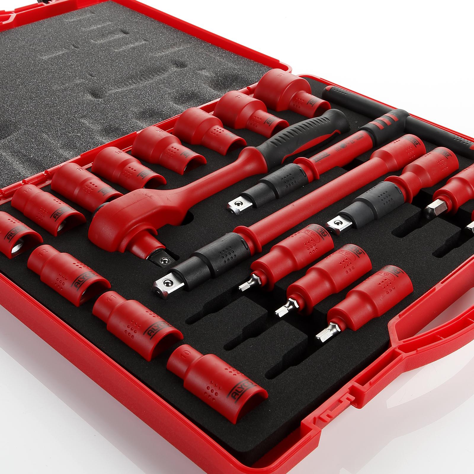 Set de douilles et accessoires isolés VDE 20 pcs de 1/2″