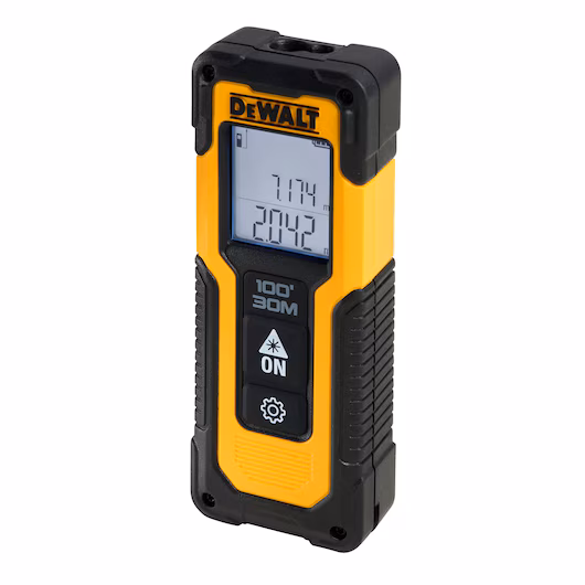La mesure laser 30 m DEWALT permet de réaliser facilement un grand nombre de mesures, avec précision. Elle offre une portée de 30 m avec une précision de +/-3 mm à 10 m. Conçue pour réaliser de multiples applications, cette mesure laser permet de prendre des mesures directes ou en continu, de calculer des volumes, des aires, de réaliser des additions et soustractions et possède également la fonction Pythagore (2 et 3 points). Cette mesure laser possède un écran LCD blanc avec lettres noires qui offre une grande lisibilité, même dans un environnement très lumineux. Elle est également équipée d’un revêtement grip pour une meilleure prise en main. Facile d’utilisation avec seulement 2 boutons, cette mesure laser polyvalente est fournie avec 2 piles AAA.