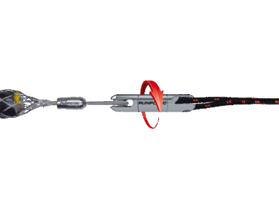 - La torsade de raccord sert à relier les câbles de traction en polyester RUNPOTEC aux câbles à tirer ou à l’embout de traction utilisé et à créer ici une compensation de torsion.