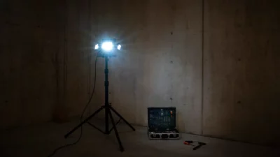 Le projecteur LED Worklight 4×30 W offre une solution d’éclairage puissante et flexible pour les applications professionnelles en intérieur comme en extérieur. Avec une puissance totale de 120 W, il produit un flux lumineux impressionnant de 14 000 lm et, grâce à sa couleur blanc lumière du jour de 6 500 K, offre un éclairage clair et naturel. Les trois niveaux de luminosité sélectionnables (100 %, 50 %, 25 %) permettent d’ajuster l’intensité lumineuse selon les besoins. Ce projecteur robuste est certifié K2 pour les chantiers et protégé contre la poussière et les projections d’eau grâce à son indice de protection IP54. Sa tête de lampe inclinable et sa poignée de transport ergonomique optimisent son confort d’utilisation et sa flexibilité. Le projecteur se connecte via un câble H07RN-F de 3 m avec une prise IP55 (type 13). Les LED durables et intégrées, d’une durée de vie allant jusqu’à 30 000 heures, rendent cet appareil particulièrement facile à entretenir. Idéal pour les ateliers, les chantiers ou les utilisations temporaires dans des conditions difficiles.